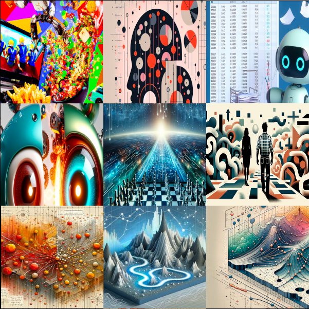 These figures will often, but not always, have a very large color gamut and throw in all kinds of colors more or less at random. They will use contrast absolutely everywhere. (Both poor nōtan and aggressive use of color contrasts. A human example of such contrast is how every movie poster uses the complimentary orange/blue combination — sorry for opening your third eye about this.) There will be all kinds of visual trash everywhere: almost-text, almost-math, almost-diagrams, almost-pockets, almost-fingers, &c., &c. Nothing will be the focal point because everything is a focal point. Nothing is detailed because everything is detailed.